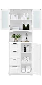 Yaheetech Armario de Baño de Almacenamiento Alto con 4 Cajones Armario con 2 …