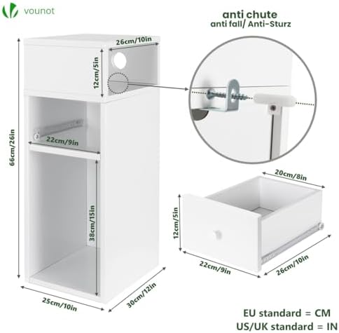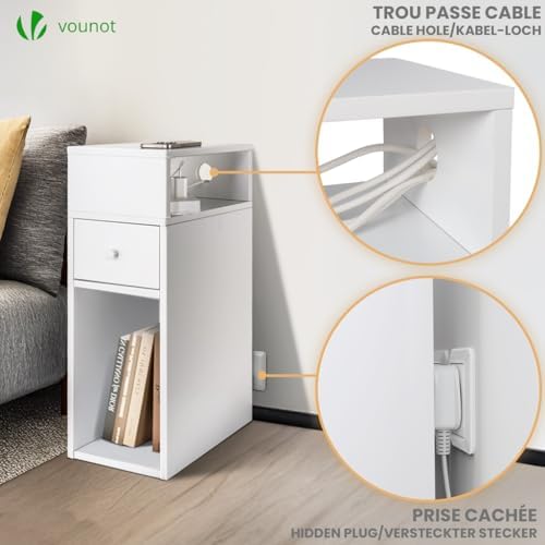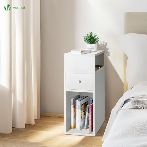 VOUNOT Mesita de Noche Estrecha Blanco