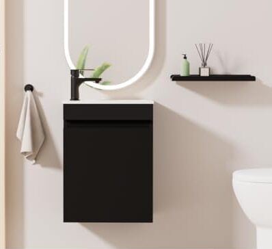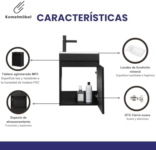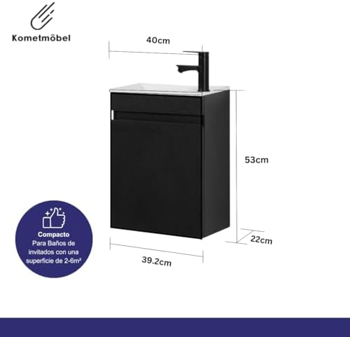 ![]() Kometmöbel Mueble de baño con Lavabo 40 cm, premontado, pequeño Lavabo negro
