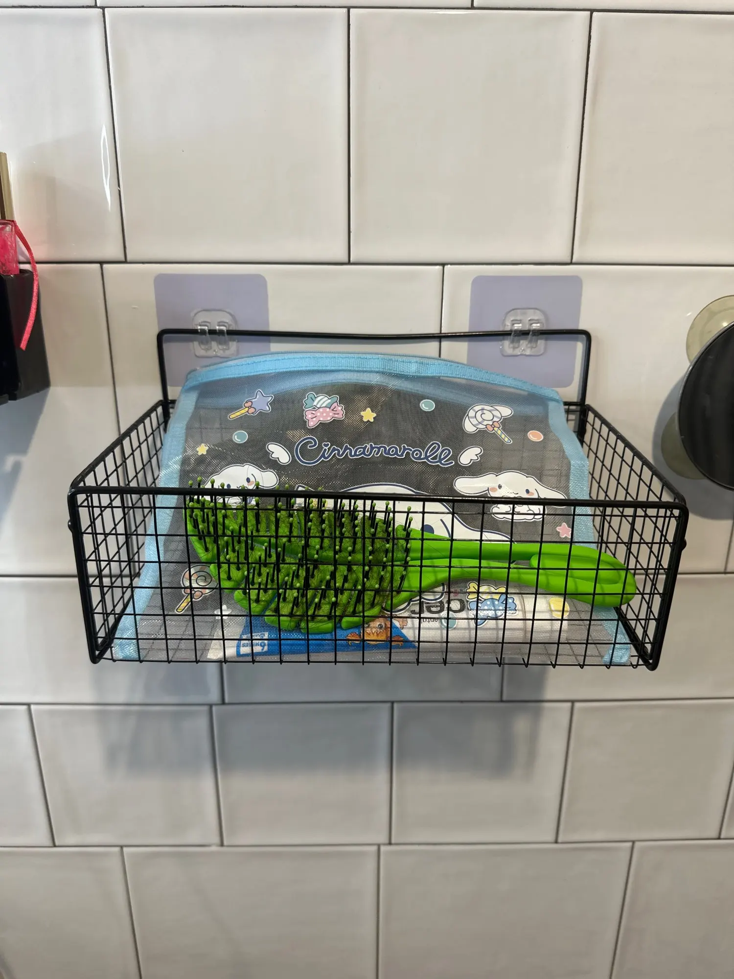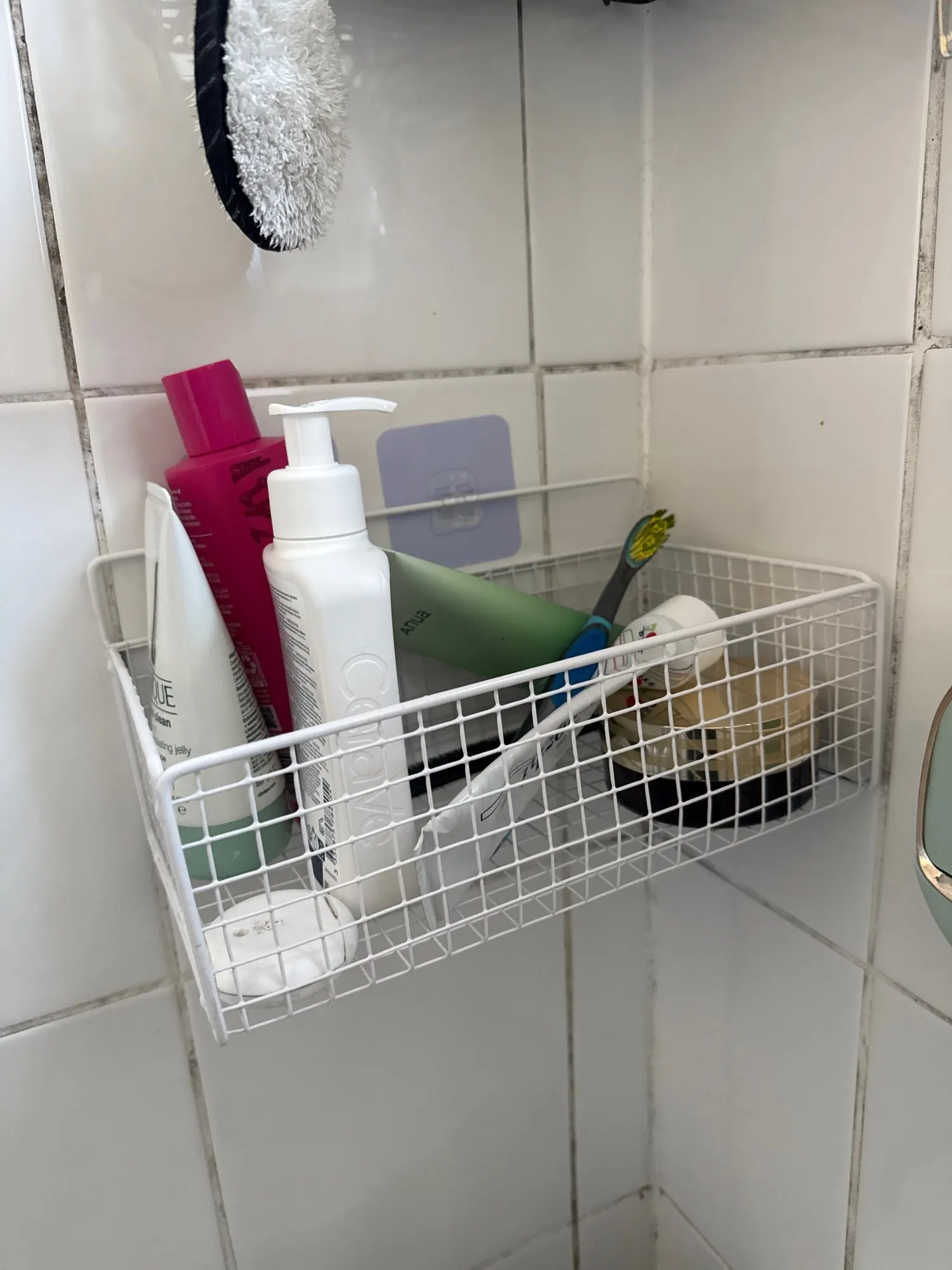 Realmente muy práctico para colgar productos en el baño en lugar de ponerlos en el depósito del inodoro. Se fijan con pegatinas, pero las cambié por unas de doble cara para pegarlas a la pared, y parece que se adhieren bien. Por eso, les aconsejo que utilicen pegatinas de doble cara para pegarlas a la pared.